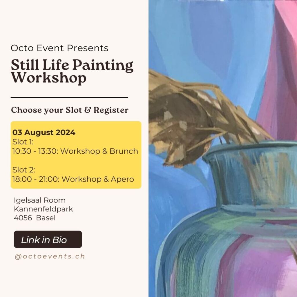 Unleash creativity in our painting workshop, guided by our inspiring instructor Adelina Malekova- designer & artist, and create your own Still Life painting. Create your master piece surrounded by the natural beauty that is Kannenfeldpark