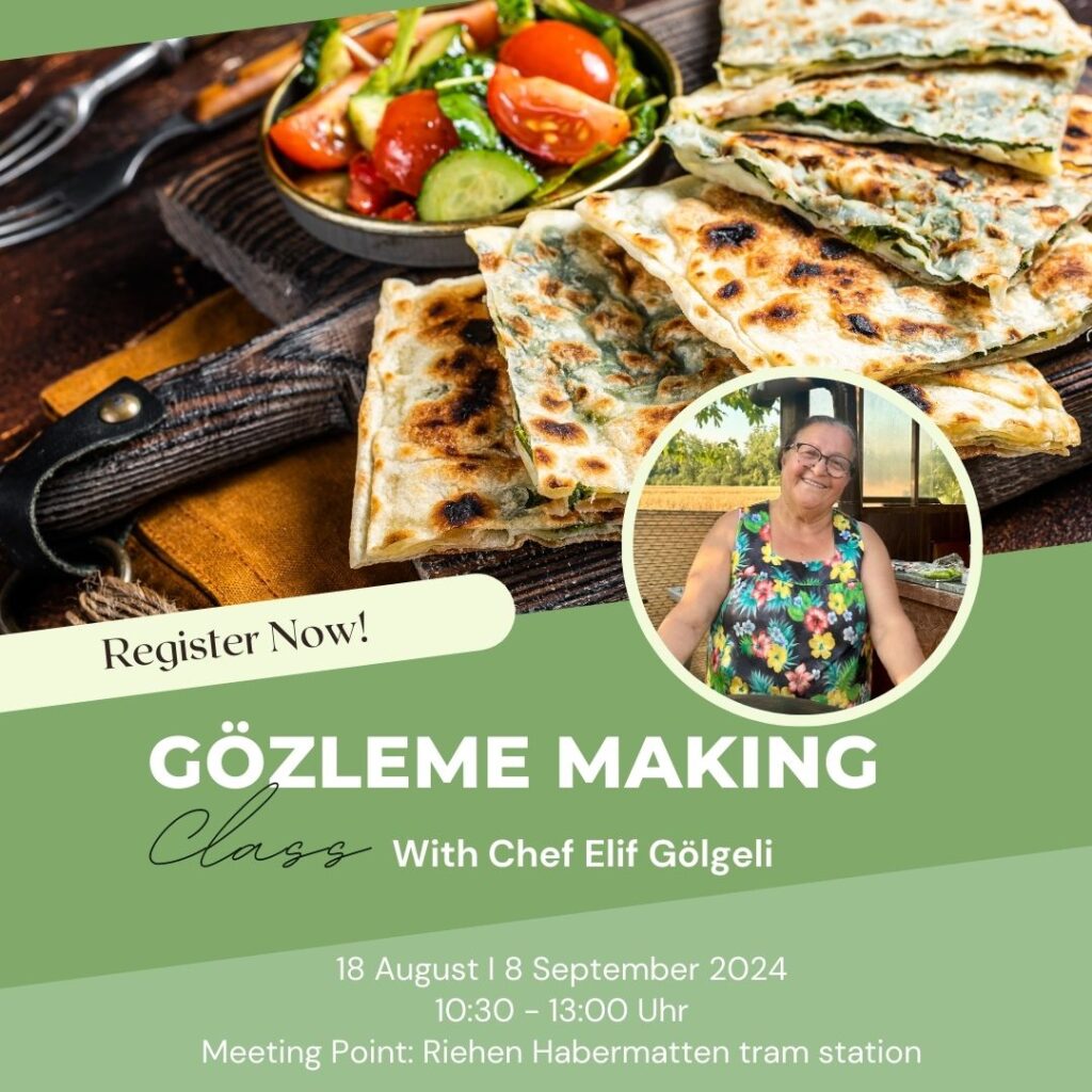 Come and join our Turkish cooking serie with Chef Elif. This time Chef will teach you how to make the delicious Gozleme in her beautiful hobby garden. Gozleme is a savoury Turkish stuffed turnover, with numerous fillings. Click on the link for more information https://eventfrog.ch/gozlemeworkshopsandbrunch
